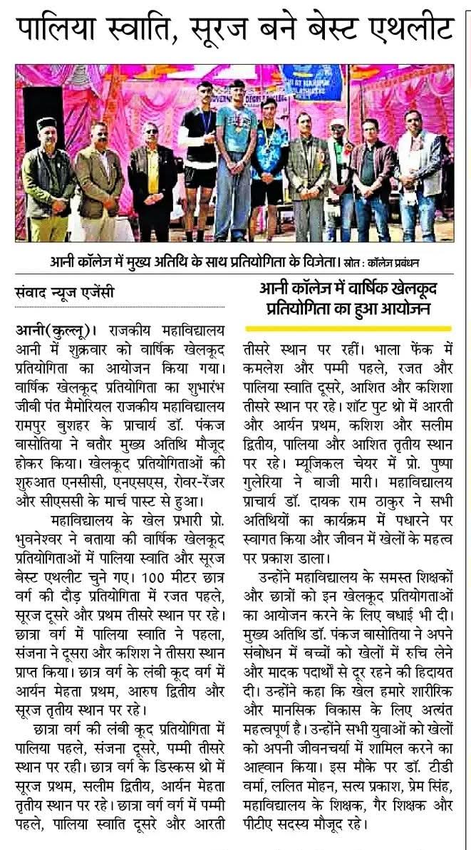 - December 2, 2025 : Second Runner up in HPU Youth Festival Group-IV