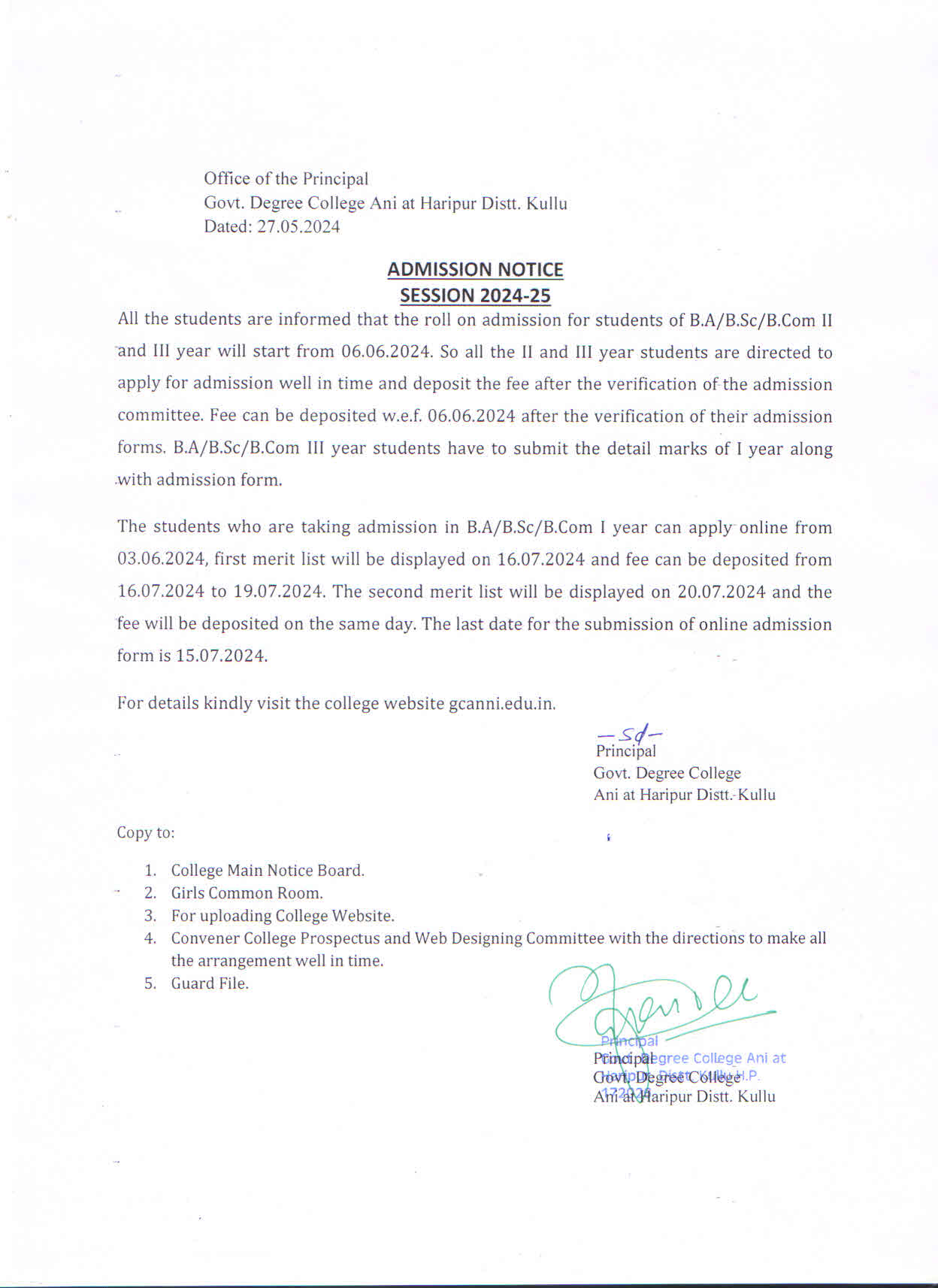 Admission Notice