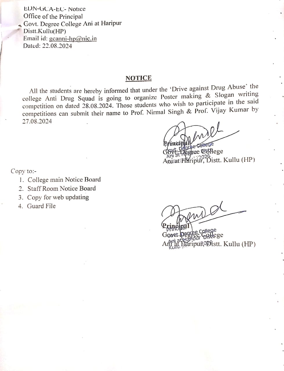 Notice of Drive Against Drug Abuse