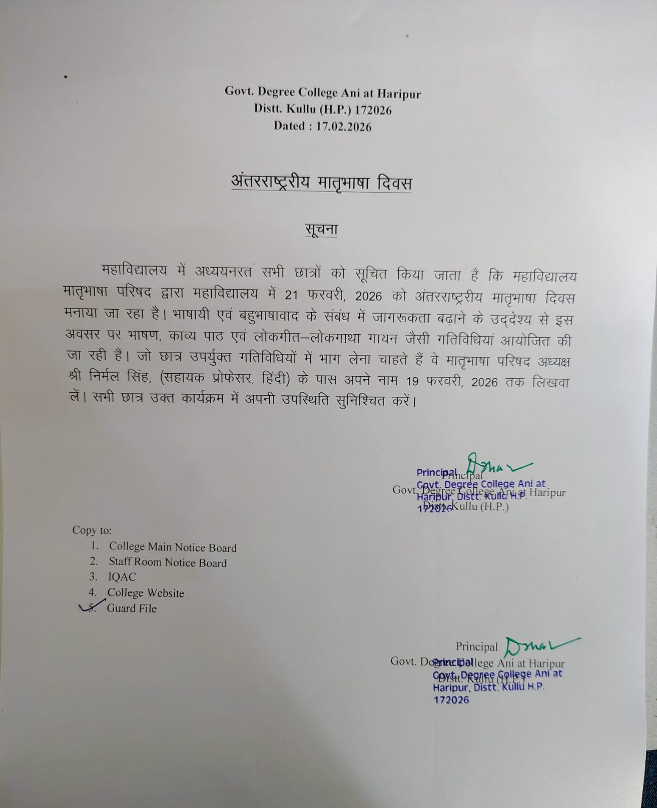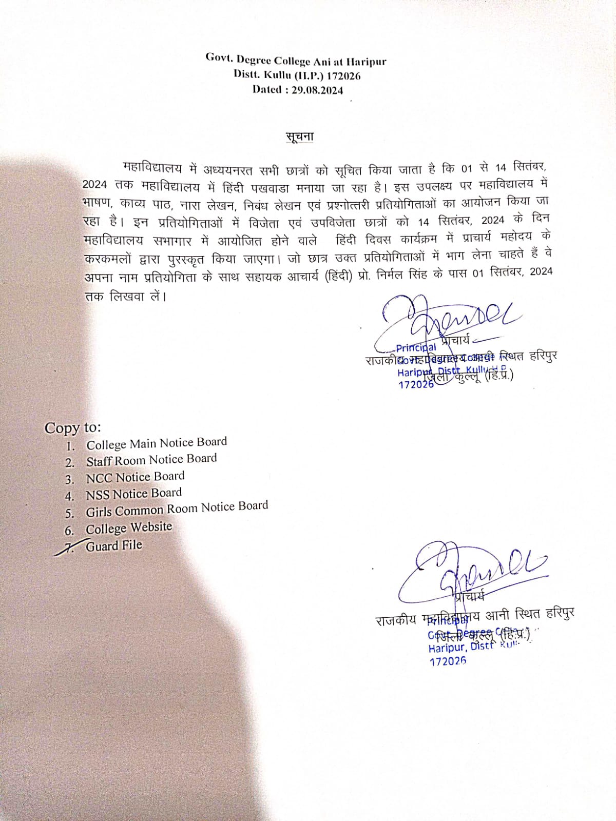 Notice regarding Hindi Pakhwara