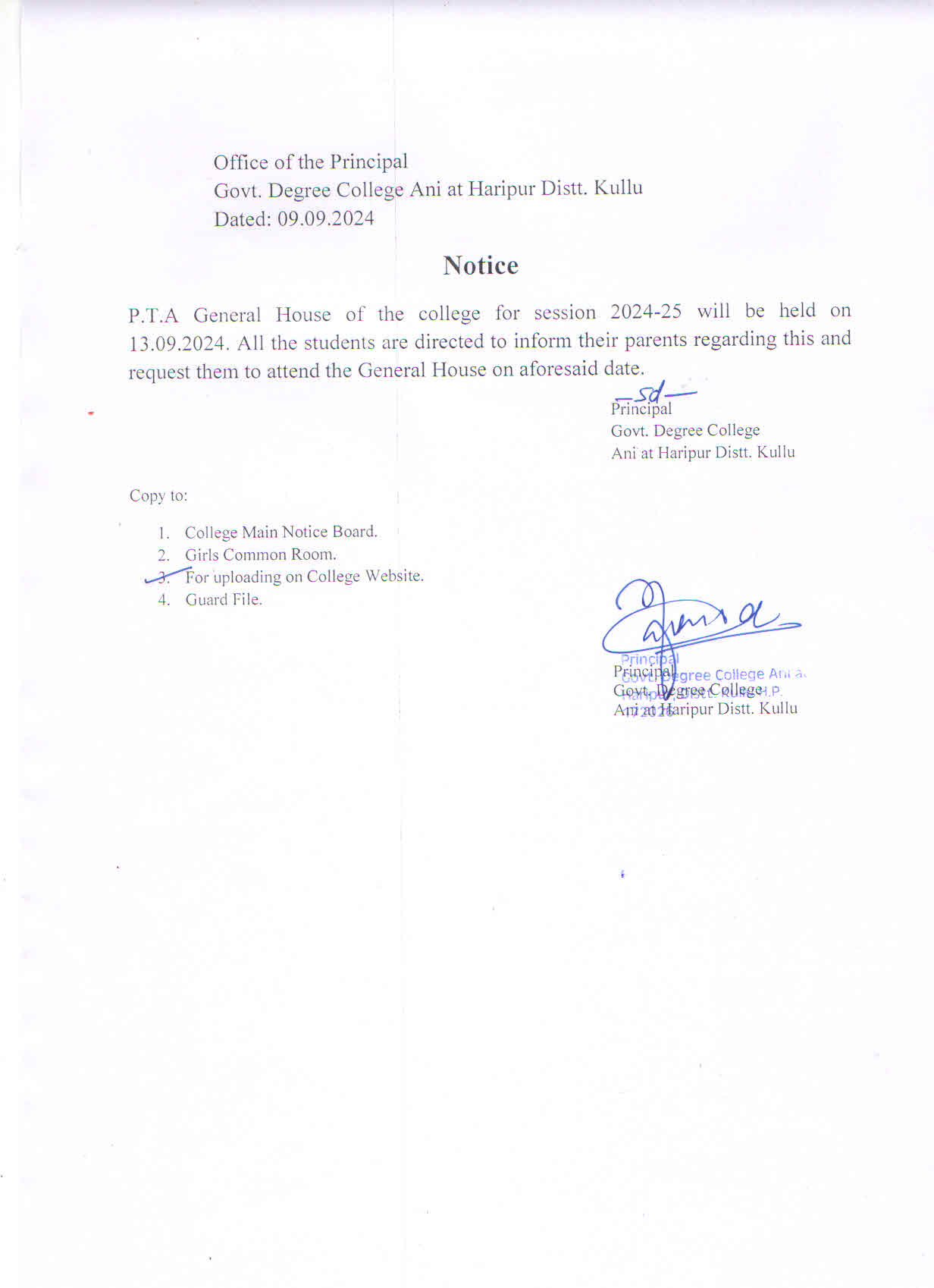 Notice regarding PTA General House