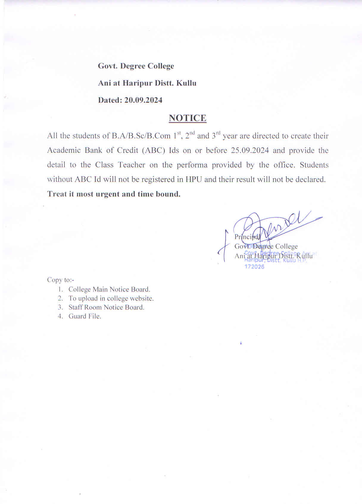 Notice regarding creation of ABC ID
