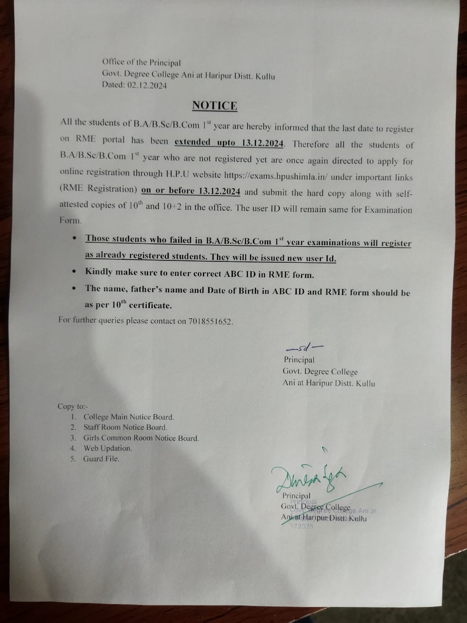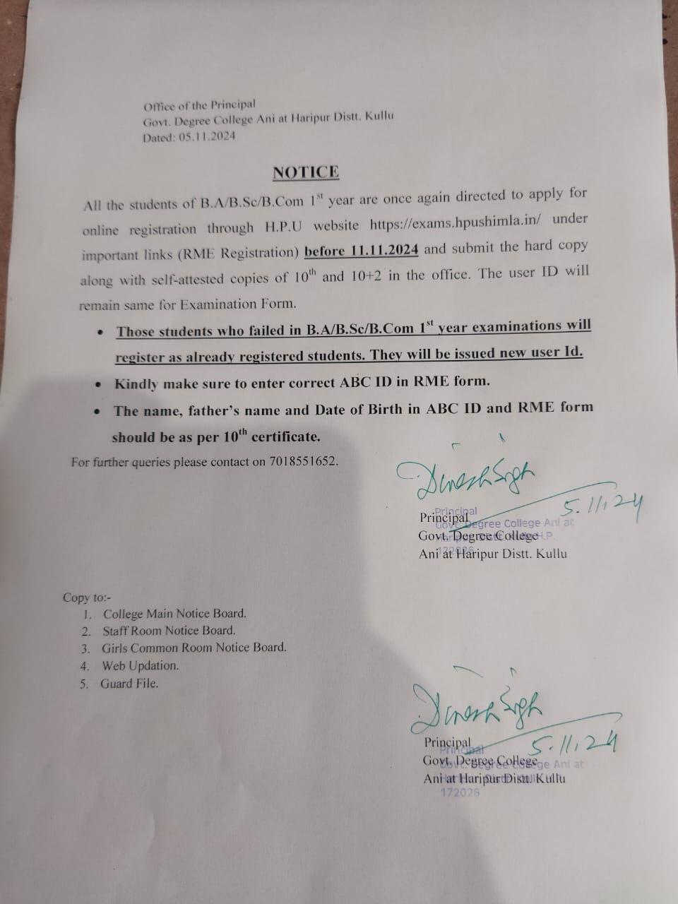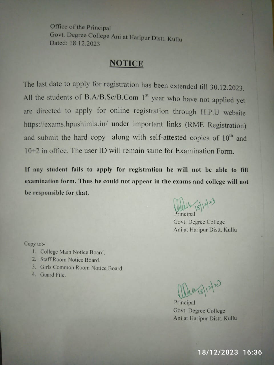 Regarding online registration of first year students on HPU website: https://exams.hpushimla.in